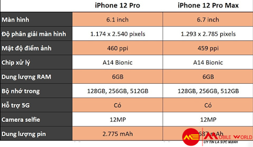 Như đã biết trong năm nay Apple sẽ cho ra mắt 4 biến thể iPhone 12 với tên gọi lần lượt như sau: iPhone 12 giá rẻ, iPhone 12 Max, iPhone 12 Pro và iPhone 12 Pro Max. Trong đó, bộ đôi iPhone 12 Pro và iPhone 12 Pro Max được dự đoán là những quân “át chủ bài” của Apple trong phân khúc cao cấp. Vậy giữa 2 phiên bản có gì khác biệt? cùng Mobileworld đi so sánh chi tiết về thiết kế, cấu hình, giá của iPhone 12 Pro và iPhone 12 Pro Max để hiểu rõ hơn về 2 thiết bị này nhé!